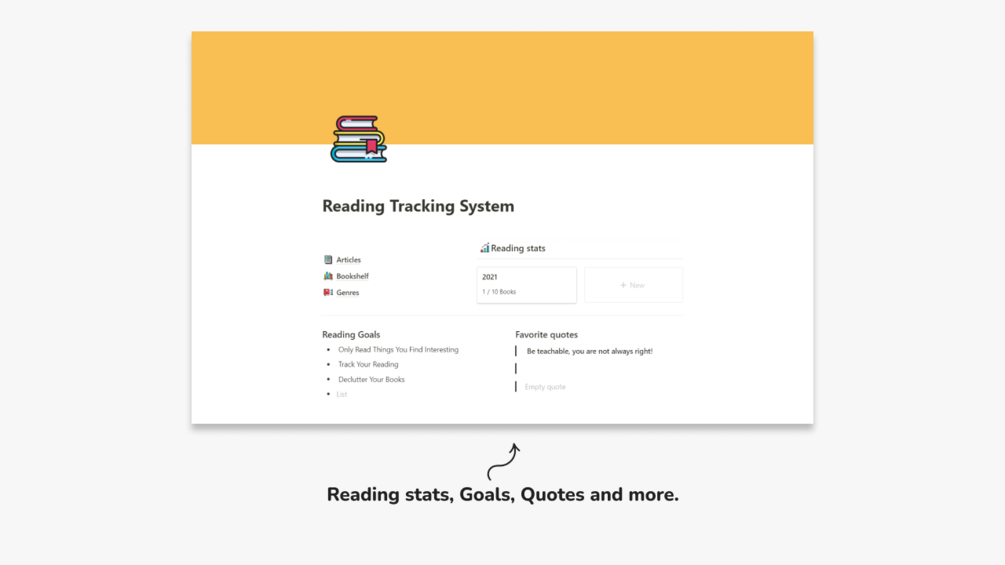This Notion Reading Tracker System includes: