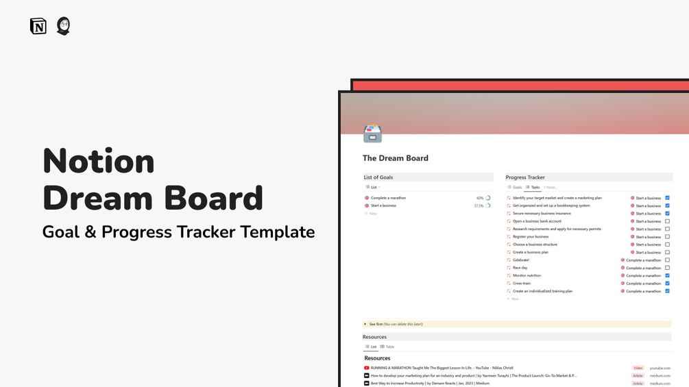 The Dream Board: Goal & Progress Tracker Notion Template